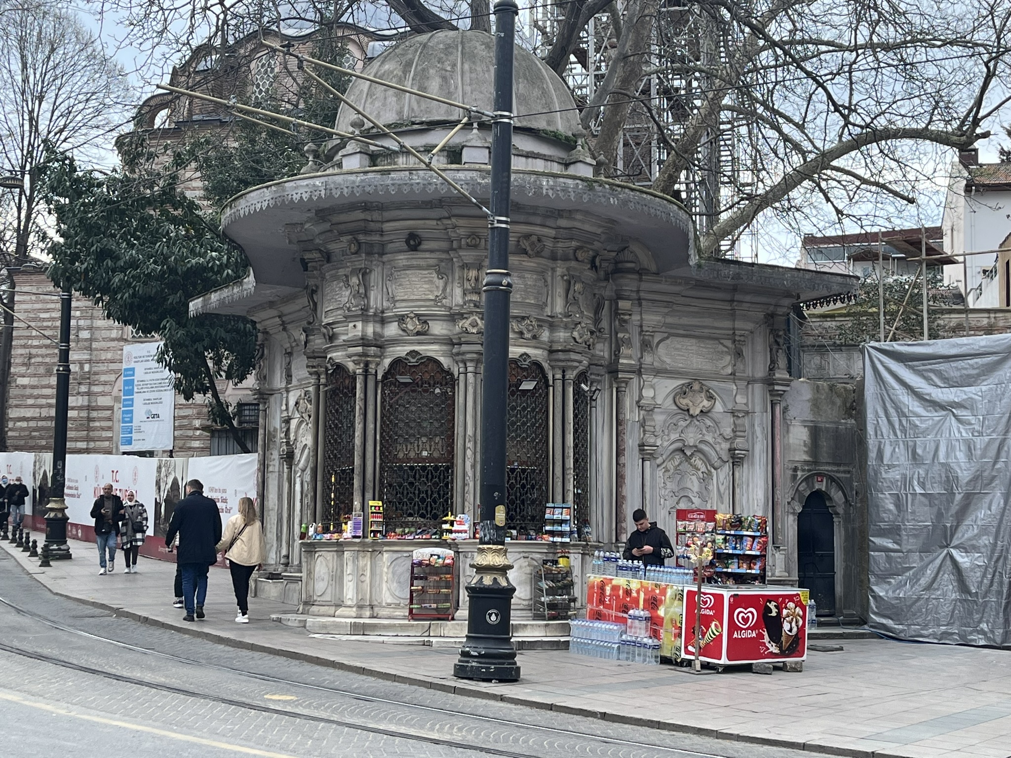This installation was once located in Bahçekapı, opposite the Hamidiye Imaret and School and opposite the tomb of Abdülhamid I, on the site of the present-day National Lottery Administration. It was demolished to make way for the construction of the waqf han, and the fountain was relocated to its current position at the corner of Zeynep Sultan Mosque, opposite the Soğukçeşme Gate of Gülhane Park, where it was rebuilt.